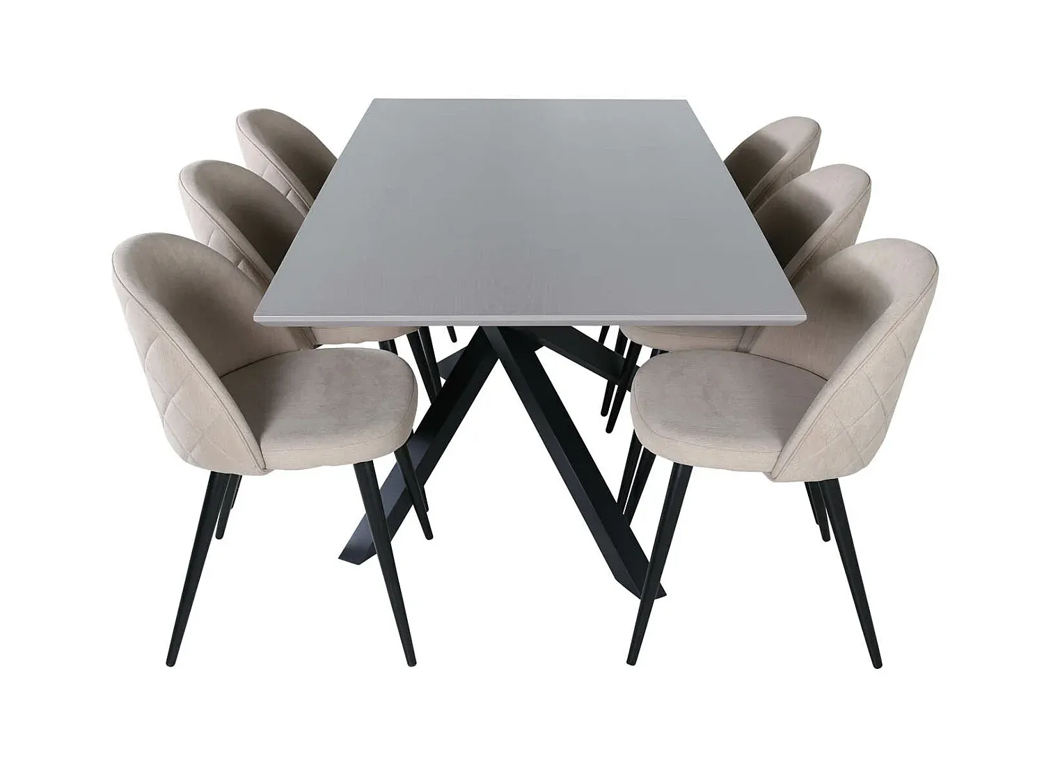 Moderner Esstisch in Grau mit 6 Samtpolsterstühlen in Beige