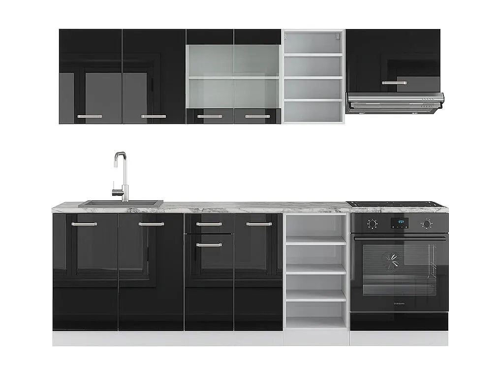 Moderne Küchenzeile weiß Hochglanz 240x60