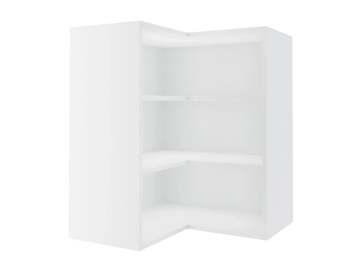 Eck-Hängeschrank mit Soft-Close-Funktion und matt lackierten Fronten. Erweitern Sie Ihre Küchenzeile mit passenden Elementen. Die Türscharniere sind mit Soft-Close-Funktion ausgestattet. Der Korpus ist in verschiedenen Farbausführungen wie weiß, grau, lava, eiche artisan und schwarz matt erhältlich. Die Fronten stehen in weiß, vanille, beige, mint, dust grey und graphit matt zur Verfügung. Der Schrank hat zwei Türen mit zwei Einlegeböden im Inneren. Die Fronten sind mit dekorativen Fräsungen und leicht abgerundeten Ecken versehen. Metallgriffe in chromglänzendem Reling-Design sind standardmäßig montiert. Der Korpus ist 18 mm stark und die Fronten sind 16 mm stark. Material: Korpus aus Faserplatte mit pflegeleichter Kunststoffoberfläche, Front aus mitteldichter Faserplatte (MDF).