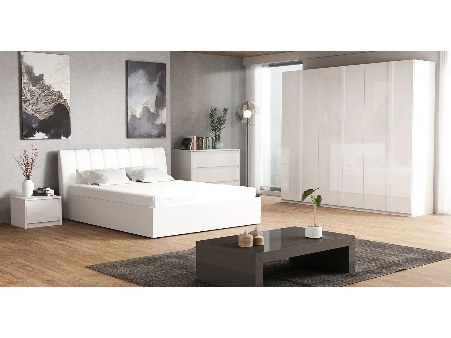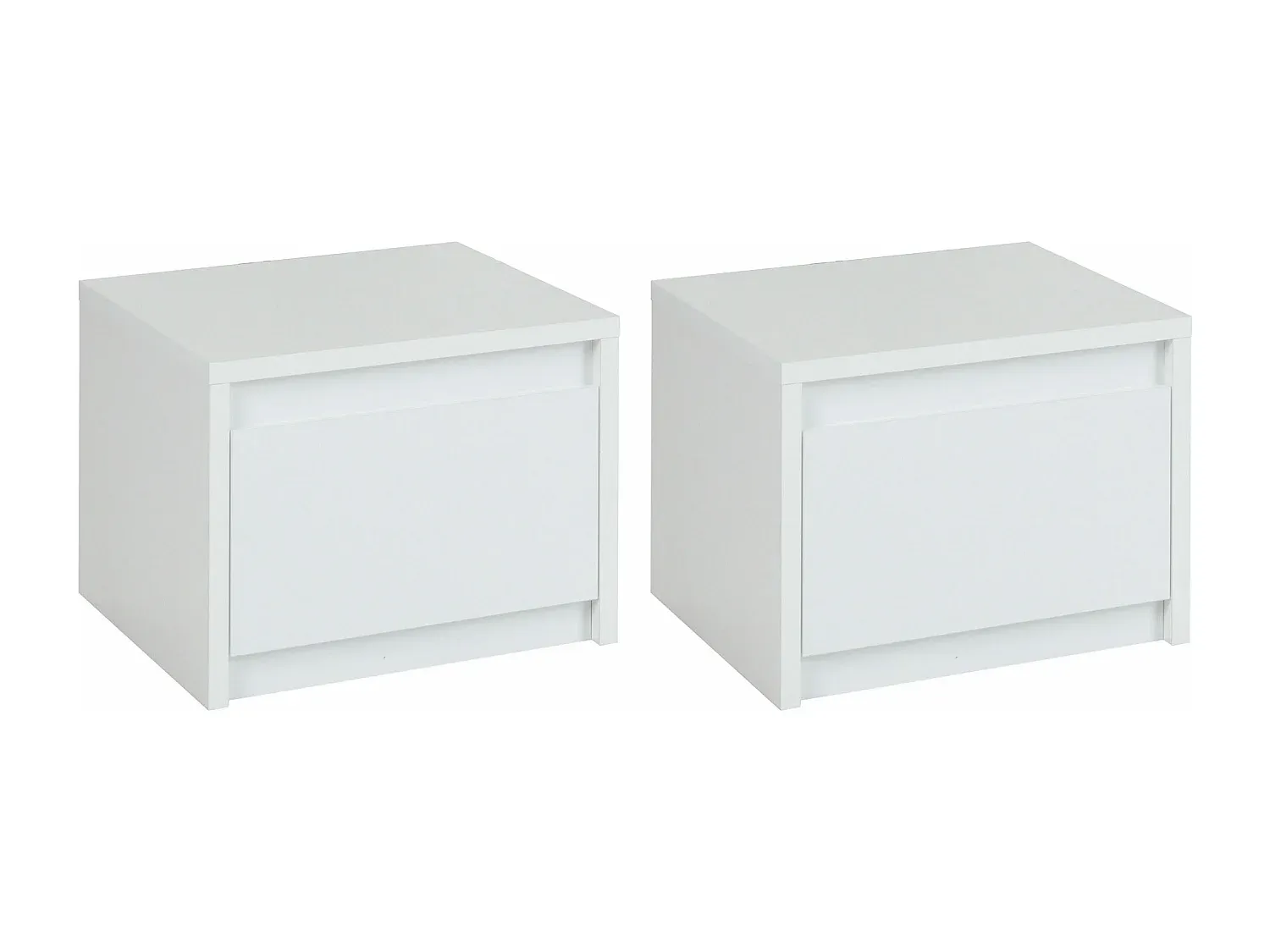 Praktisches 2er-Set Nachtkonsolen im modernen Design. Diese Nachtkonsolen sind vielseitig kombinierbar mit anderen Möbelstücken. Die Oberfläche ist weiß matt, die Fronten haben ein Hochglanzfinish. Das Material besteht aus melaminharzbeschichteter Spanplatte, die Rückwand ist aus Hartfaserplatte. Ausgestattet mit ABS-Kanten, Soft-Close-Funktion, Vollauszug, Hochglanzfront und Griffmulden. Jede der Schubladen läuft auf einem Metallauszug und die Belastbarkeit des Oberbodens beträgt 10 kg, während die Schublade bis zu 20 kg tragen kann. Maße sind B/T/H: 47 cm / 41 cm / 35 cm.