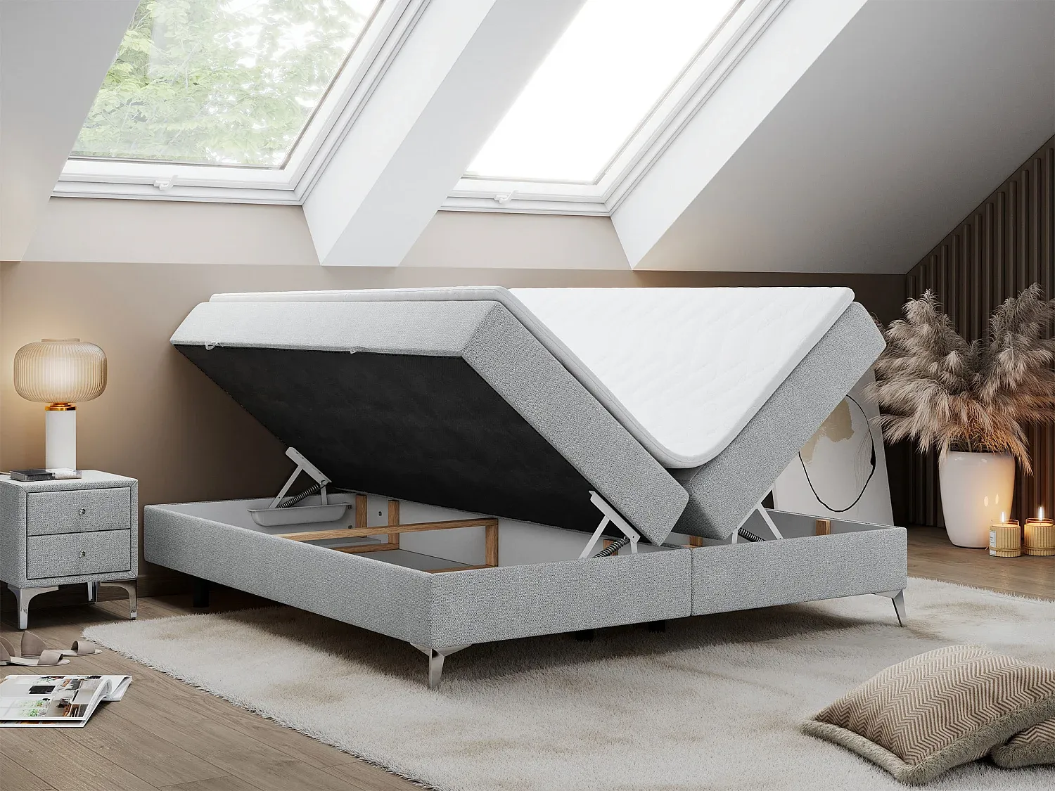 Komfortables Doppelbett mit Bettkästen und 7-Zonen-Matratzen