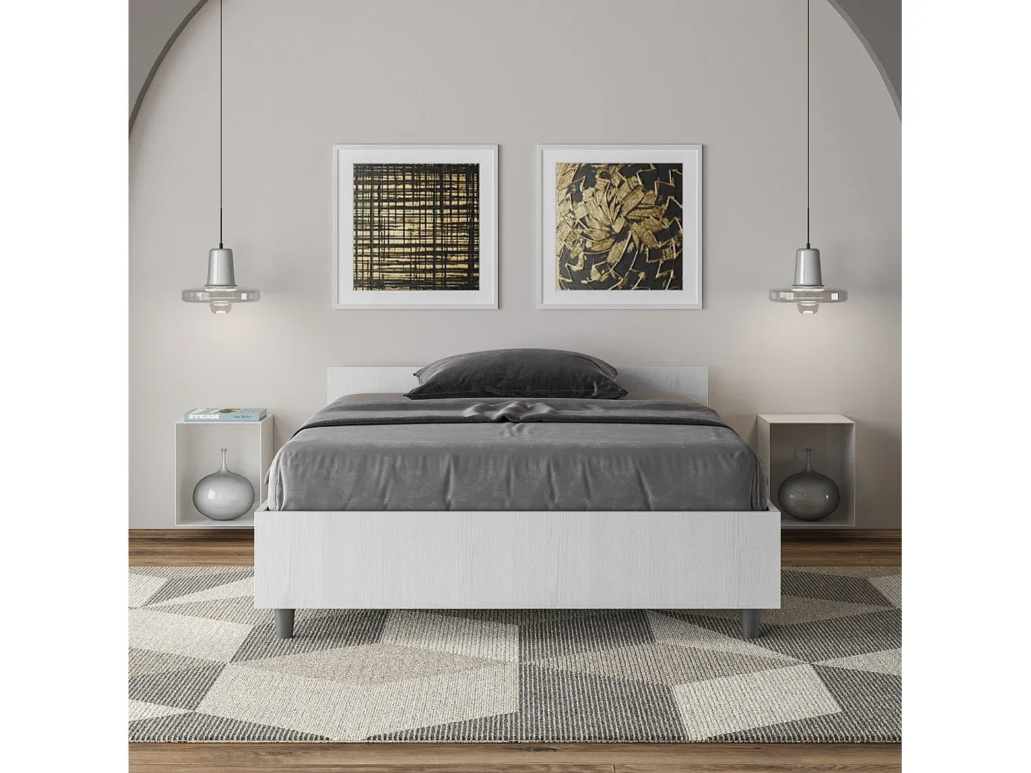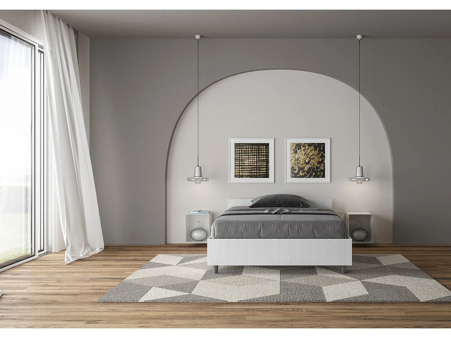 Das Bett in der Größe 120x200 cm mit Kopfteil und Bettrahmen aus Melamin passt sich gut verschiedenen Einrichtungsstilen an. Es zeichnet sich durch seine schlichten Linien aus und sorgt für eine angenehme Atmosphäre im Schlafzimmer. Das Bett beinhaltet einen Lattenrost, ist jedoch ohne Matratze erhältlich. Größenangaben: 120x200 cm Liegefläche, Gesamtbreite 127 cm, Gesamthöhe 62 cm, Gesamttiefe 209 cm. Fußhöhe 12 cm, Höhe der Bettstruktur 26 cm, Lattenrosthöhe 38 cm.