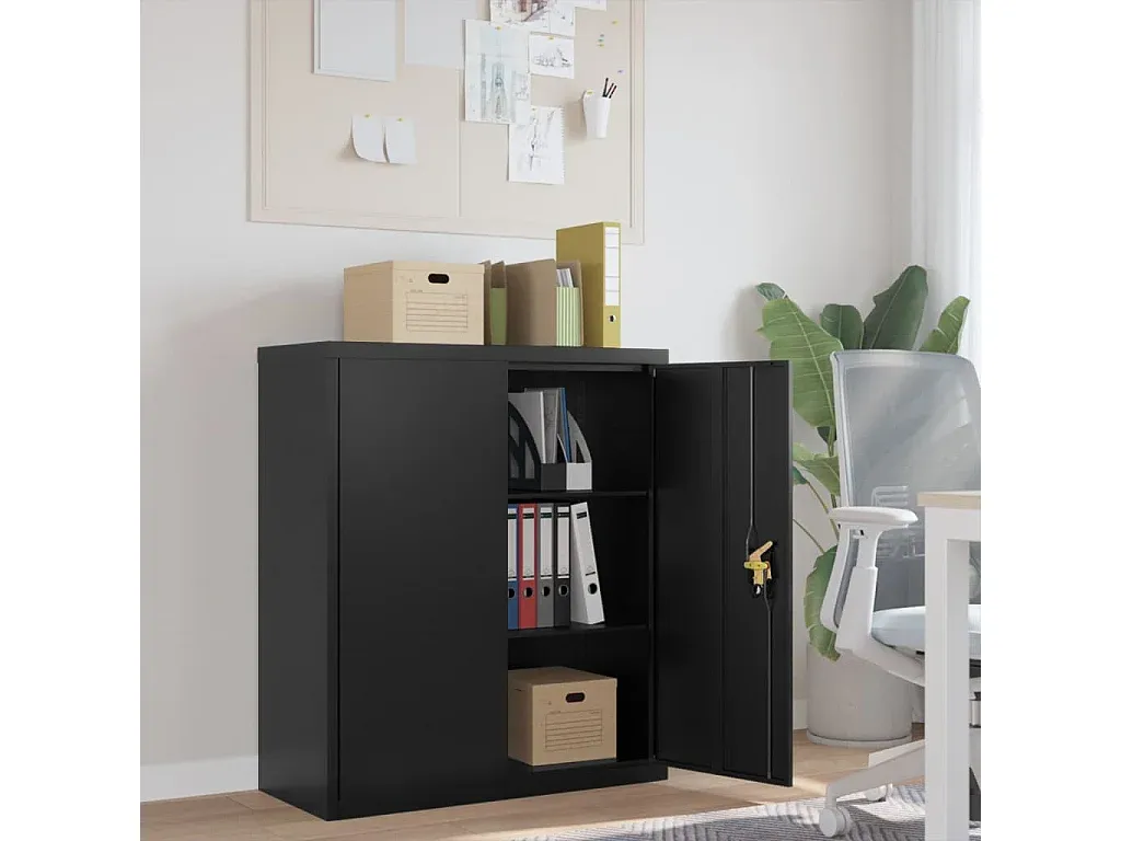 Metall-Aktenschrank in Schwarz mit verstellbaren Einlegeböden