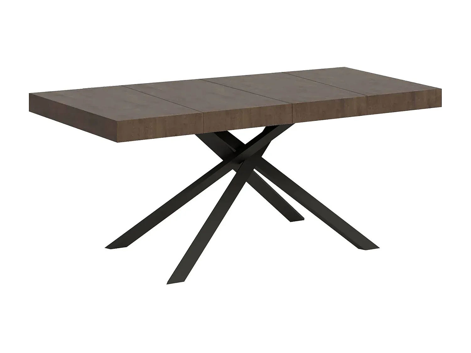 Der Esstisch bietet flexible Anpassungsmöglichkeiten für verschiedene Raumgrößen. Er lässt sich auf bis zu 234 cm verlängern und bietet Platz für bis zu 10 Personen. Die Haupttischplatte und die Verlängerungen bestehen aus melaminbeschichteten Spanplatten. Die Eisenbeine und ein Aluminium-Teleskopschienensystem sorgen für Stabilität. Die Verlängerungen sind abnehmbar und nicht in der Tischstruktur verstaubar.
