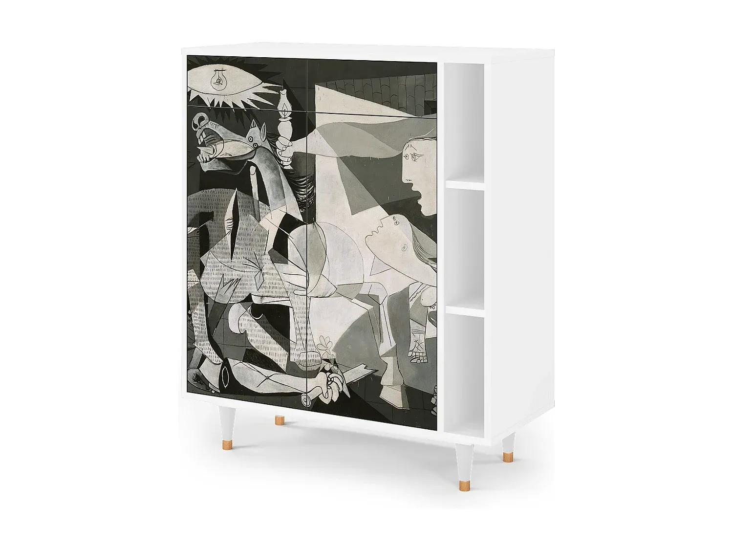 Der Schrank bietet praktische Schubladen für eine einfache Organisation. Kleine Gegenstände können leicht verstaut werden, um den Alltag zu erleichtern. Das Design des Schranks passt in unterschiedliche Räume und kombiniert Funktionalität mit einem ansprechenden Aussehen. Die Oberflächen sind schützend versiegelt, um die Robustheit gegen Kratzer und Verblassen zu gewährleisten. Er steht auf stabilen Holzbeinen mit Metallelementen und behält dabei seine strukturelle Stabilität bei. Der Schrank ist in verschiedenen Farben und Designs erhältlich, um individuelle Vorlieben zu erfüllen. Maße: Breite: 96 cm, Höhe: 110 cm, Tiefe: 41 cm