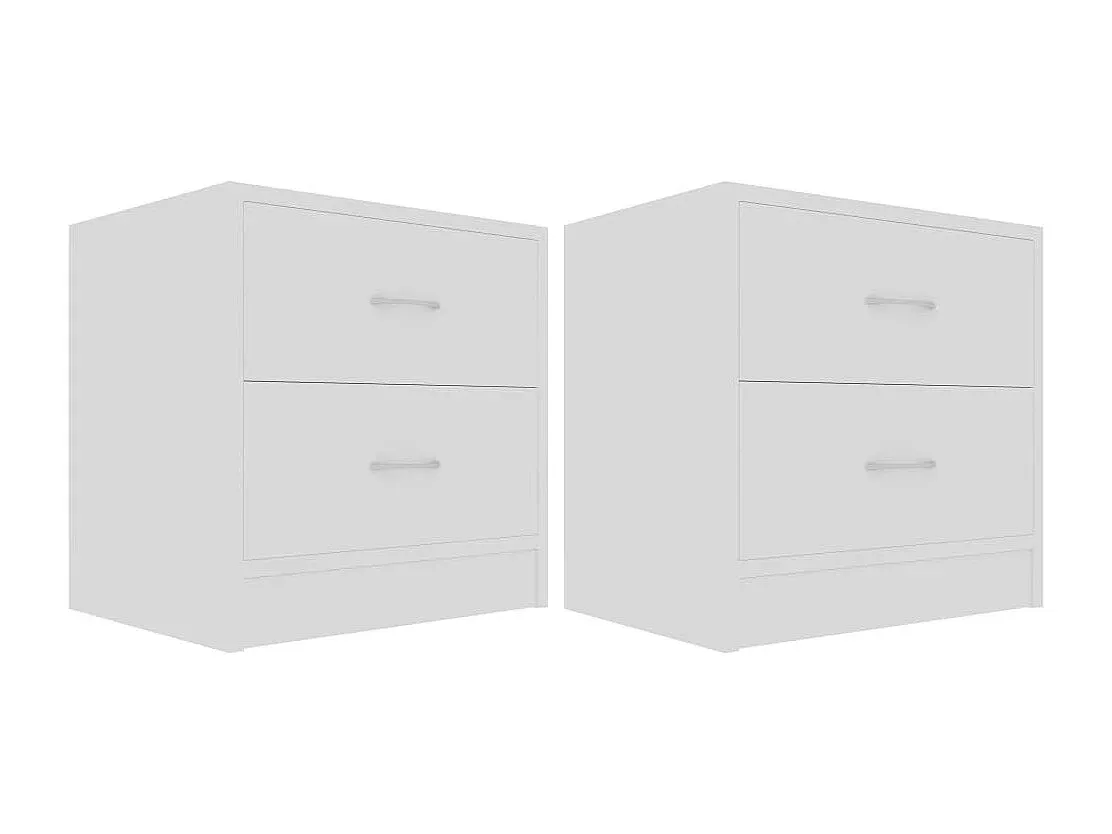 Dieser Nachtschrank aus Holzwerkstoff eignet sich gut für verschiedene Wohnbereiche. Er kann auch als Couchtisch verwendet werden. Mit zwei Schubladen bietet der Tisch Platz für Zeitschriften, Bücher und Fernbedienungen. Die Reinigung erfolgt einfach mit einem feuchten Tuch. Der Nachttisch hat die Farbe Weiß und misst 40 x 30 x 40 cm (B x T x H). Der Zusammenbau ist erforderlich. Im Set sind zwei Nachttische enthalten.