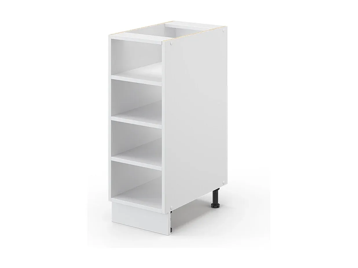 Dieses Küchenregal bietet eine funktionale Lösung zur Aufbewahrung von Gegenständen in der Küche. Es integriert MDF-Fronten und Soft-Close-Scharniere, die für eine einfache Handhabung sorgen. Die Maße betragen 30 x 82 x 60 cm (BxHxT). Es besteht aus einer 16 mm Spanplatte mit einer Melaminharzbeschichtung. Dieses Möbelstück wird auf dem Boden platziert und hat eine weiße Arbeitsplatte im Marble-Design.