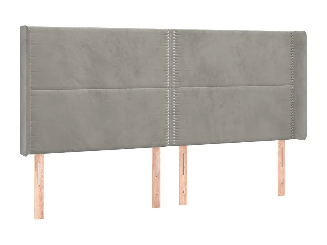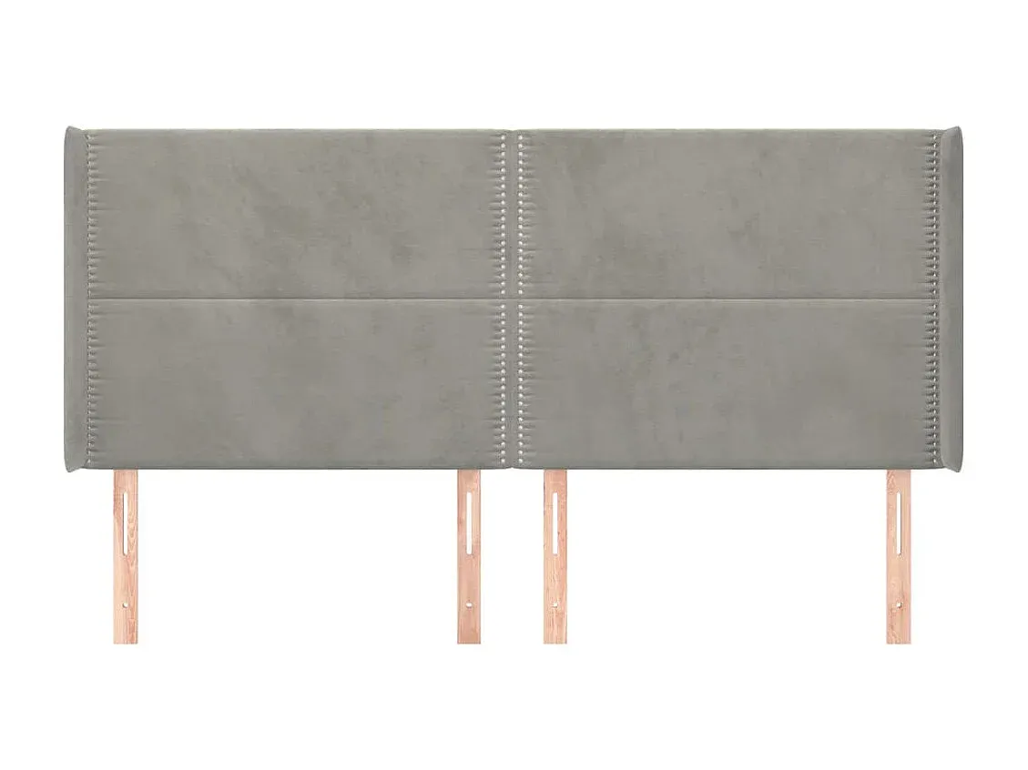 Samt Kopfteil mit Ohren in Hellgrau 163x16x118/128 cm